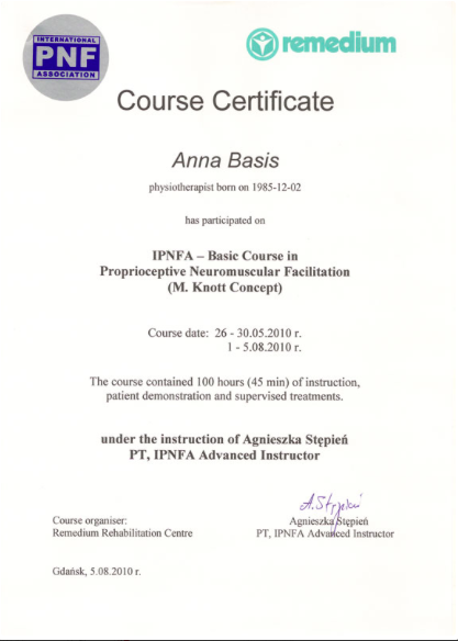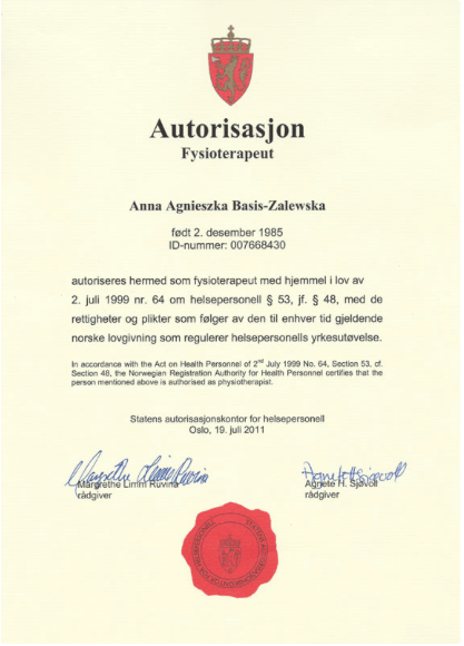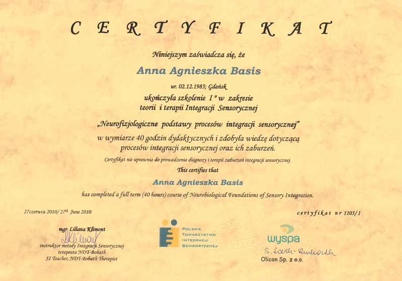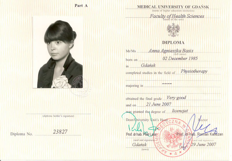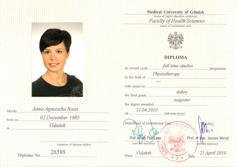 I 2010 ble jeg uteksaminert med mastergrad fra Medisinsk Universitet i Gdańsk, min masteroppgave handlet om terapi for prematurfødte spedbarn.