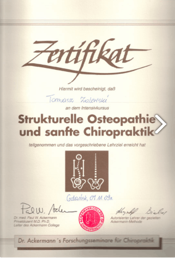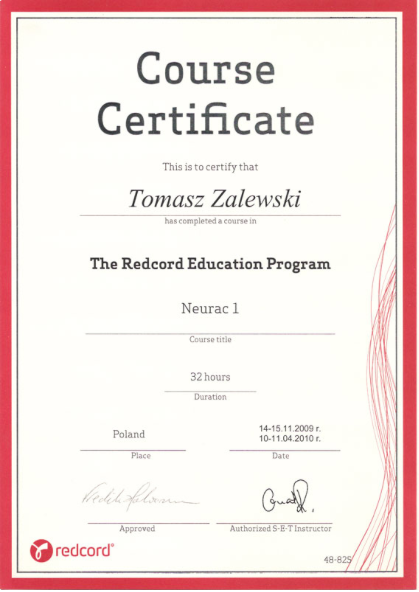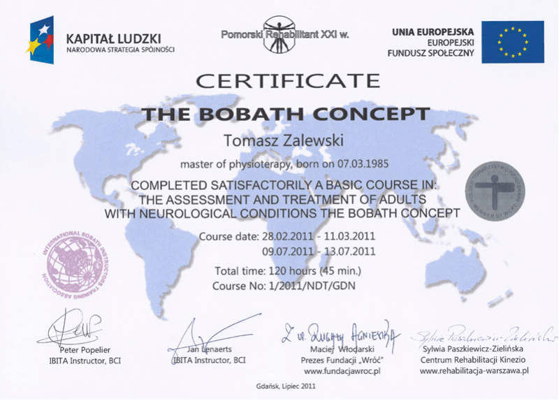 Uteksaminert i 2010 fra Medisinsk Universitet i Gdańsk med mastergrad i fysioterapi.