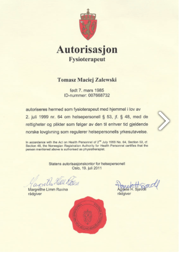 Min spesialisering er ortopedisk behandling og skadebehandling av voksne pasienter og jeg tilbyr en rekke terapeutiske teknikker, ulike massasjeteknikker, flere kiropraktiske teknikker og manuellterapi. Jeg tilbyr også terapi for pasienter med nevrologiske problemer, kroniske sykdommer og langvarig immobilisering.